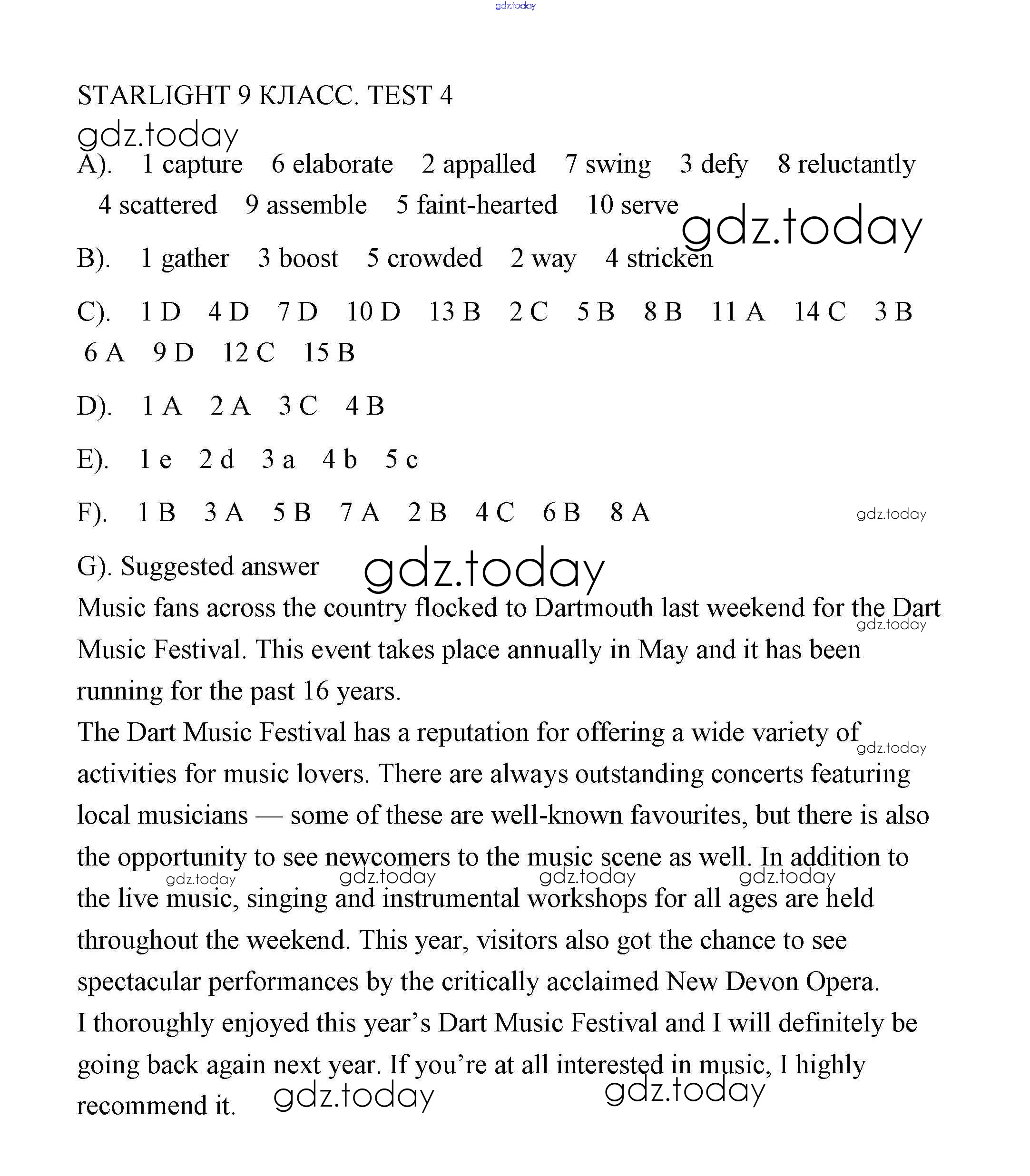 Ответы к Решение. Тесты 4 Контрольным заданиям по Английскому языку для 9 класса Баранова, Дули Углубленный уровень Просвещение Starlight 2015