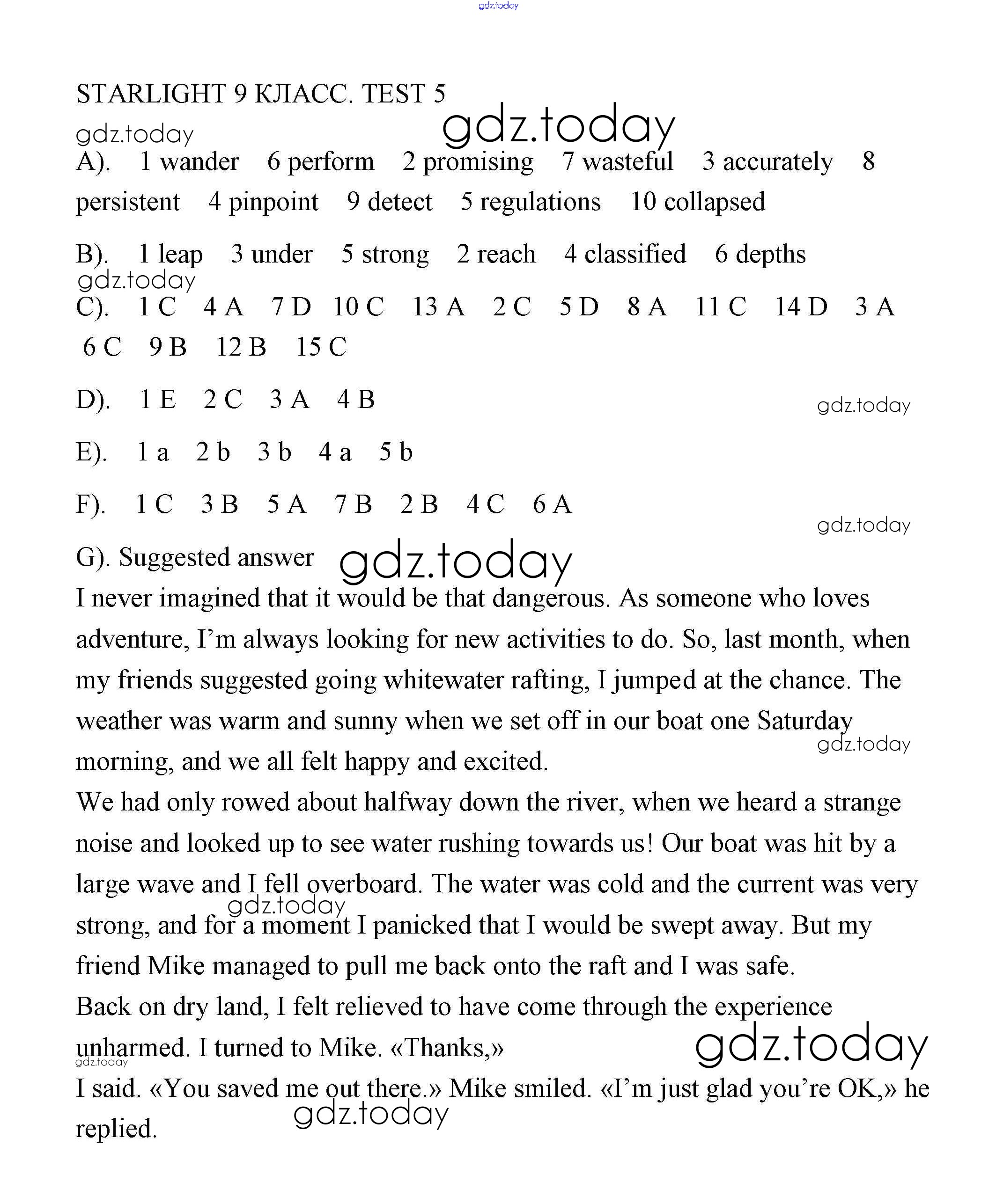 На страницах сайта gdz.today вы найдете учебный и вспомогательный материал, направленный на улучшения знаний школьной программы. ГДЗ - онлайн мир знаний Решение. Тесты 5 Контрольным заданиям по Английскому языку для 9 класса Баранова, Дули Углубленный уровень Просвещение Starlight 2015