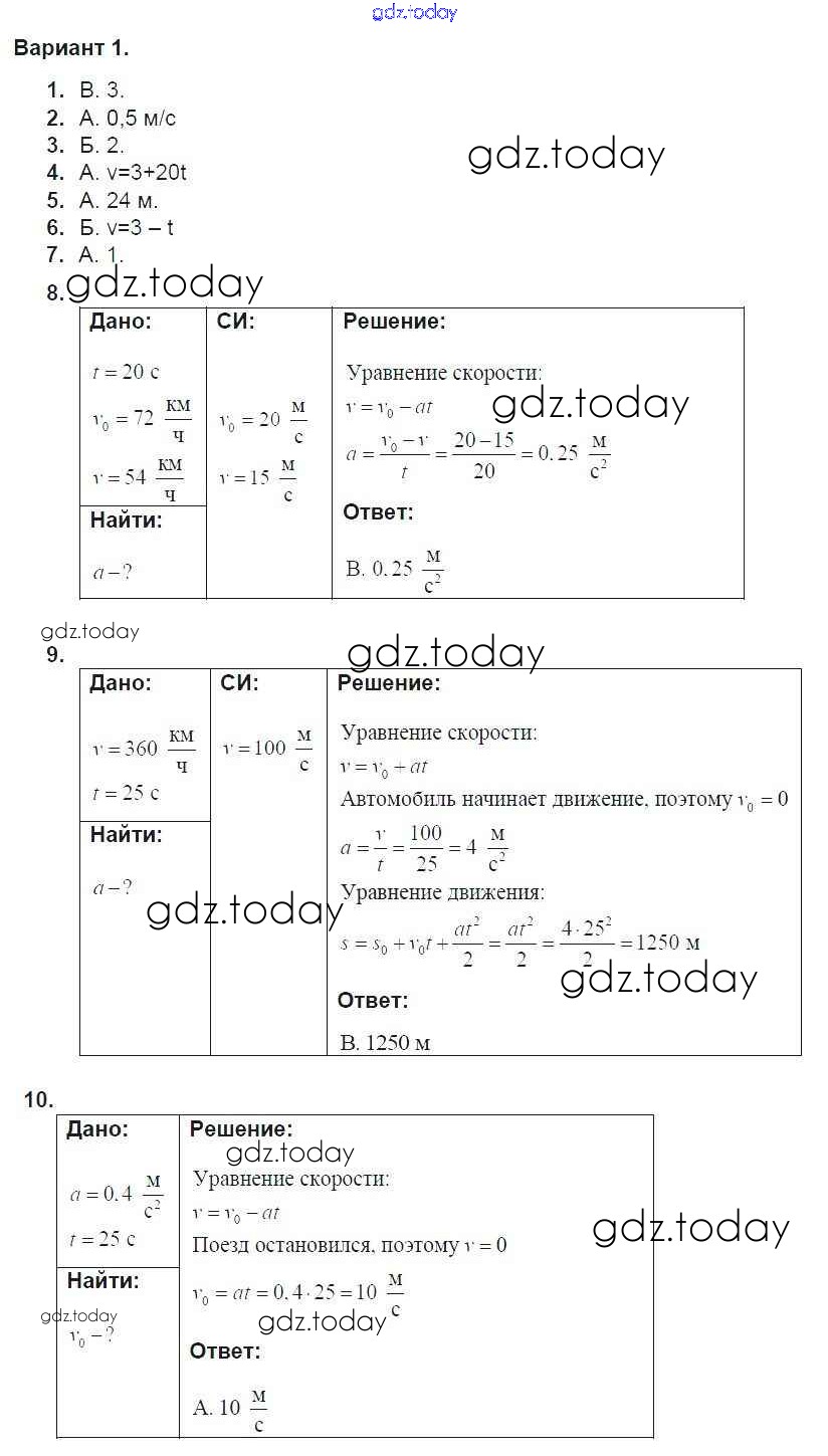 Ответы к Тест 2. Варианты Решение к тестам для самоконтроля 1 Дидактическим материалам по Физике для 9 класса Марон Дрофа УМК 2019
