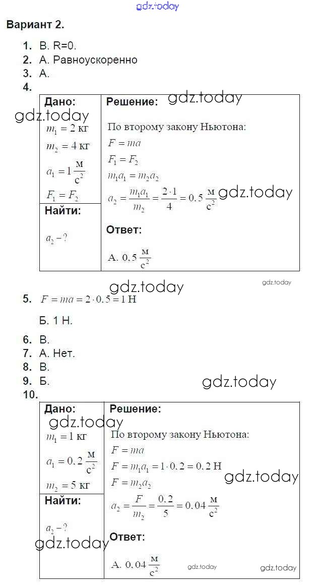 На страницах сайта gdz.today вы найдете учебный и вспомогательный материал, направленный на улучшения знаний школьной программы. ГДЗ - онлайн мир знаний Тест 3. Варианты Решение к тестам для самоконтроля 2 Дидактическим материалам по Физике для 9 класса Марон Дрофа УМК 2019