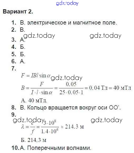 На страницах сайта gdz.today вы найдете учебный и вспомогательный материал, направленный на улучшения знаний школьной программы. ГДЗ - онлайн мир знаний Тест 9. Варианты Решение к тестам для самоконтроля 2 Дидактическим материалам по Физике для 9 класса Марон Дрофа УМК 2019