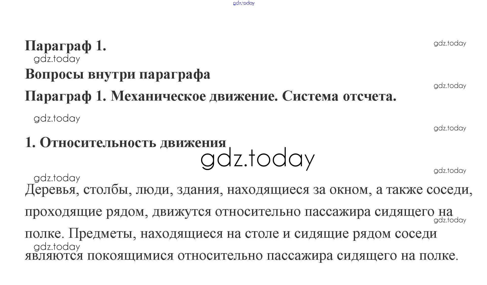 На страницах сайта gdz.today вы найдете учебный и вспомогательный материал, направленный на улучшения знаний школьной программы. ГДЗ - онлайн мир знаний Вопросы 1. Механическое движение. Система отсчета 1 Учебнику по Физике для 9 класса Генденштейн, Булатова Мнемозина 2010