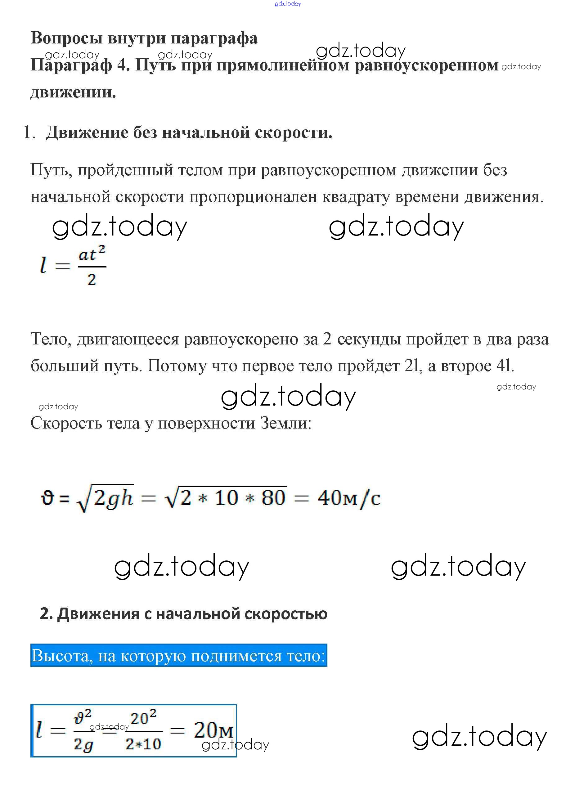 На страницах сайта gdz.today вы найдете учебный и вспомогательный материал, направленный на улучшения знаний школьной программы. ГДЗ - онлайн мир знаний Вопросы 4. Путь при прямолинейном равноускоренном движении 1 Учебнику по Физике для 9 класса Генденштейн, Булатова Мнемозина 2010