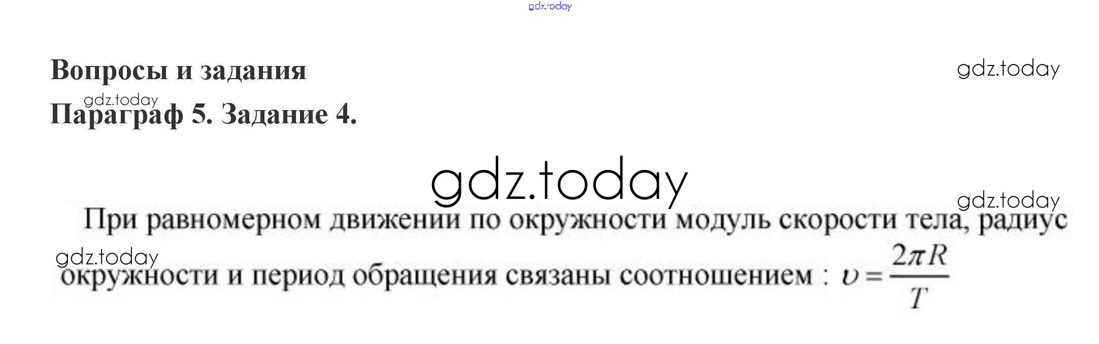 На страницах сайта gdz.today вы найдете учебный и вспомогательный материал, направленный на улучшения знаний школьной программы. ГДЗ - онлайн мир знаний Задание 5. Равномерное движение по окружности 4 Учебнику по Физике для 9 класса Генденштейн, Булатова Мнемозина 2010