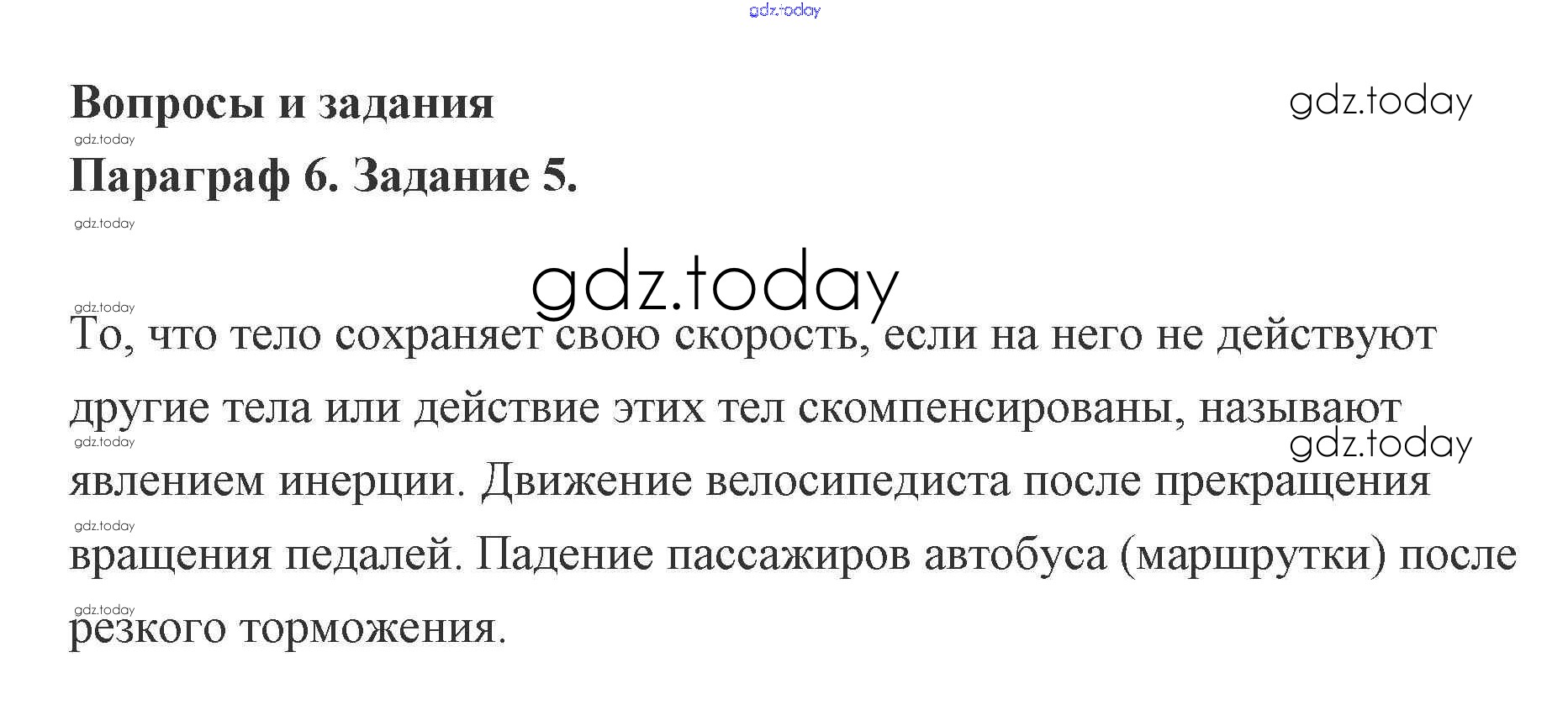 На страницах сайта gdz.today вы найдете учебный и вспомогательный материал, направленный на улучшения знаний школьной программы. ГДЗ - онлайн мир знаний Задание 6. Закон инерции - первый закон Ньютона 5 Учебнику по Физике для 9 класса Генденштейн, Булатова Мнемозина 2010
