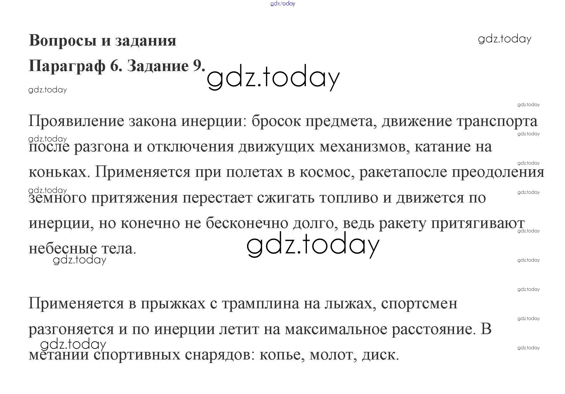 На страницах сайта gdz.today вы найдете учебный и вспомогательный материал, направленный на улучшения знаний школьной программы. ГДЗ - онлайн мир знаний Задание 6. Закон инерции - первый закон Ньютона 9 Учебнику по Физике для 9 класса Генденштейн, Булатова Мнемозина 2010