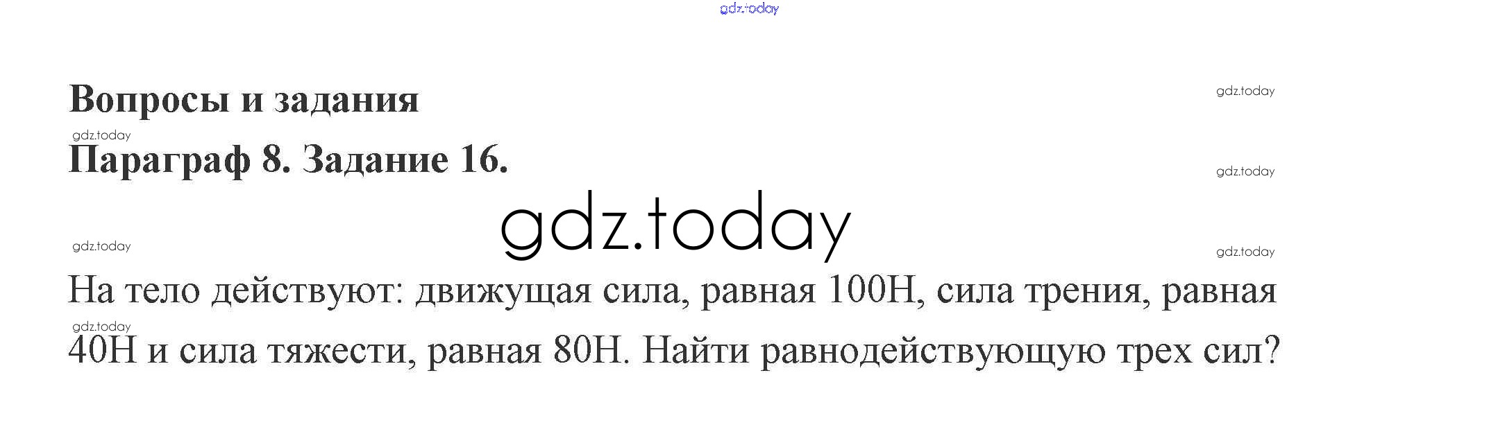На страницах сайта gdz.today вы найдете учебный и вспомогательный материал, направленный на улучшения знаний школьной программы. ГДЗ - онлайн мир знаний Задание 8. Второй закон Ньютона 16 Учебнику по Физике для 9 класса Генденштейн, Булатова Мнемозина 2010