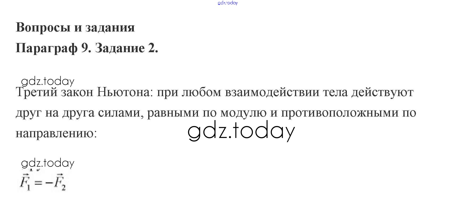 На страницах сайта gdz.today вы найдете учебный и вспомогательный материал, направленный на улучшения знаний школьной программы. ГДЗ - онлайн мир знаний Задание 9. Третий закон Ньютона 2 Учебнику по Физике для 9 класса Генденштейн, Булатова Мнемозина 2010