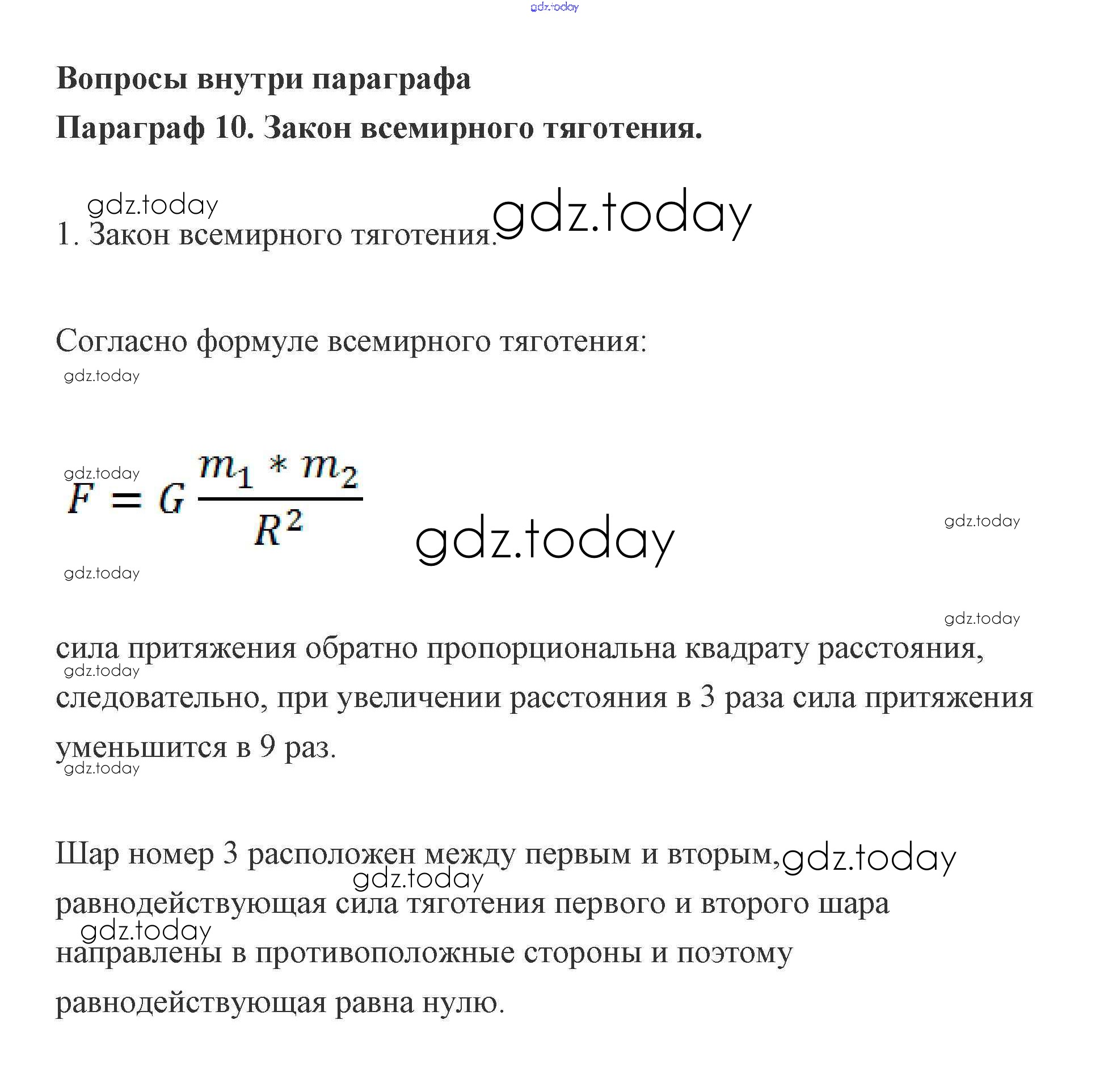 На страницах сайта gdz.today вы найдете учебный и вспомогательный материал, направленный на улучшения знаний школьной программы. ГДЗ - онлайн мир знаний Вопросы 10. Закон всемирного тяготения 1 Учебнику по Физике для 9 класса Генденштейн, Булатова Мнемозина 2010