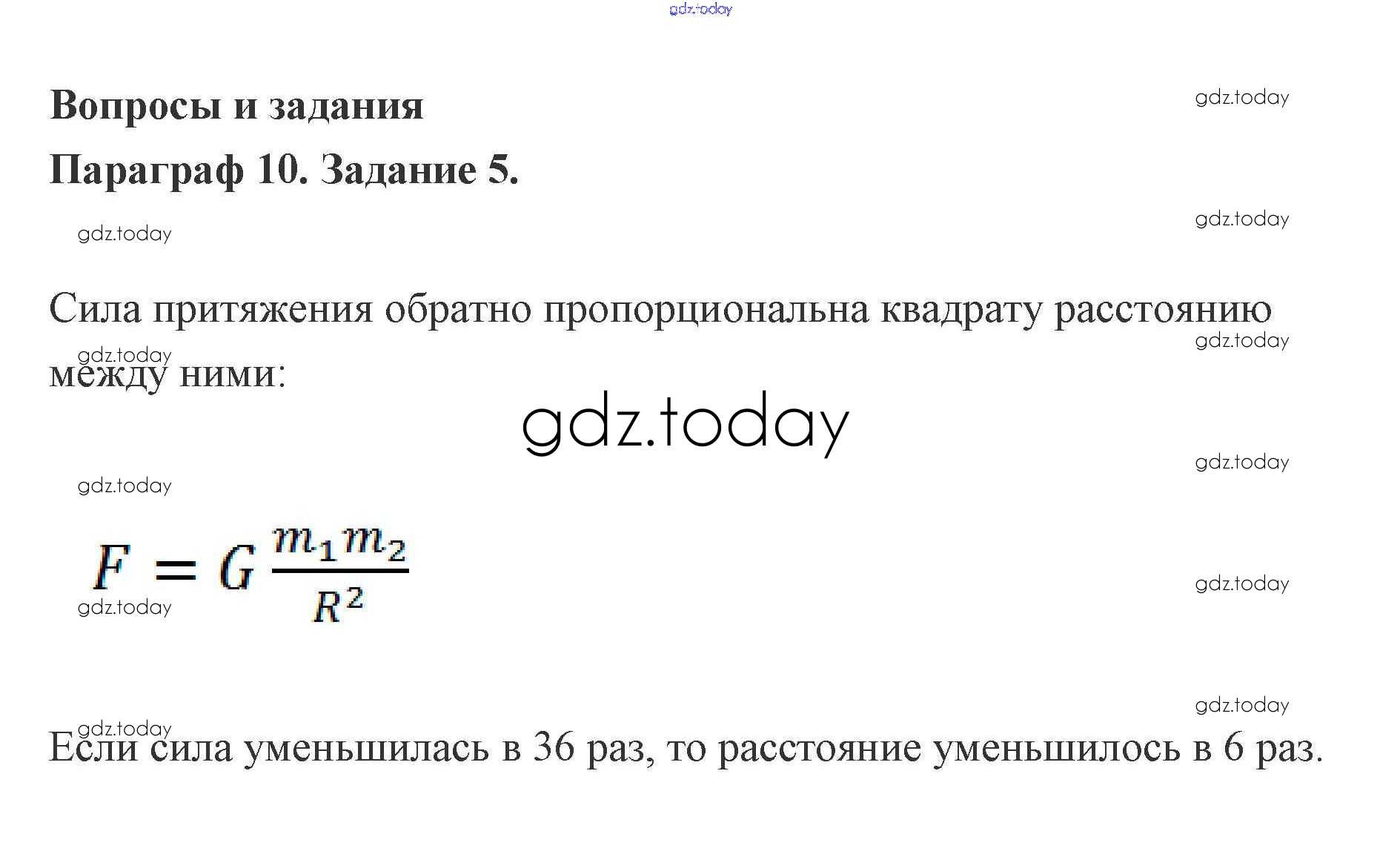На страницах сайта gdz.today вы найдете учебный и вспомогательный материал, направленный на улучшения знаний школьной программы. ГДЗ - онлайн мир знаний Задание 10. Закон всемирного тяготения 5 Учебнику по Физике для 9 класса Генденштейн, Булатова Мнемозина 2010