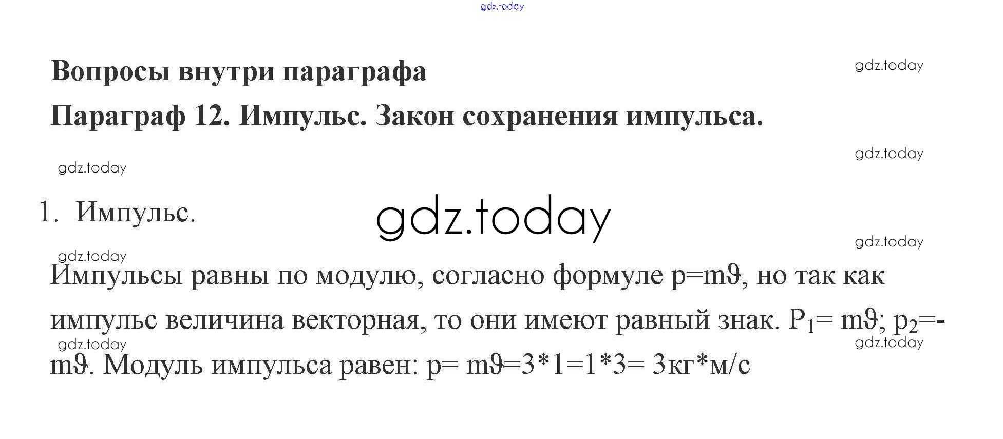 На страницах сайта gdz.today вы найдете учебный и вспомогательный материал, направленный на улучшения знаний школьной программы. ГДЗ - онлайн мир знаний Вопросы 12. Импульс. Закон сохранения импульса 1 Учебнику по Физике для 9 класса Генденштейн, Булатова Мнемозина 2010