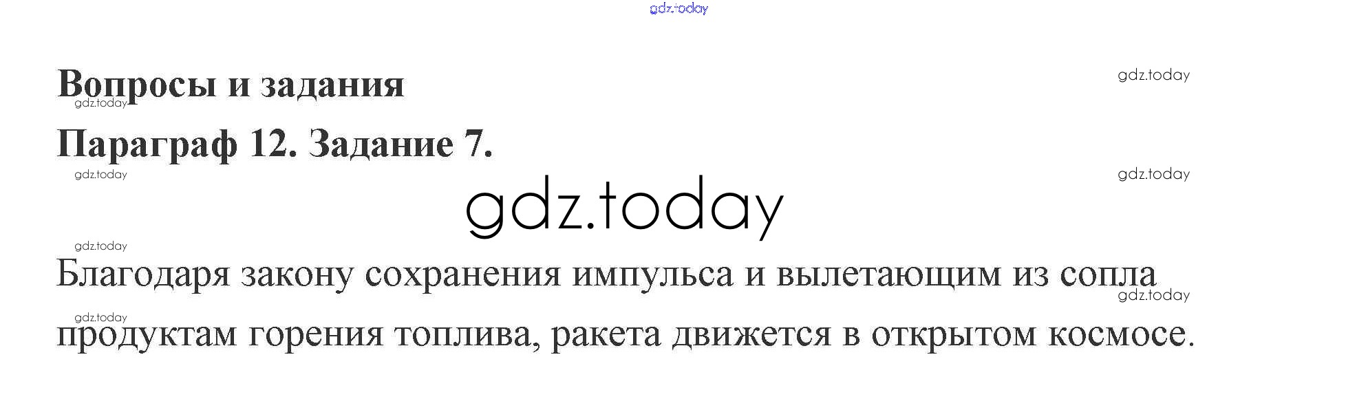 На страницах сайта gdz.today вы найдете учебный и вспомогательный материал, направленный на улучшения знаний школьной программы. ГДЗ - онлайн мир знаний Задание 12. Импульс. Закон сохранения импульса 7 Учебнику по Физике для 9 класса Генденштейн, Булатова Мнемозина 2010