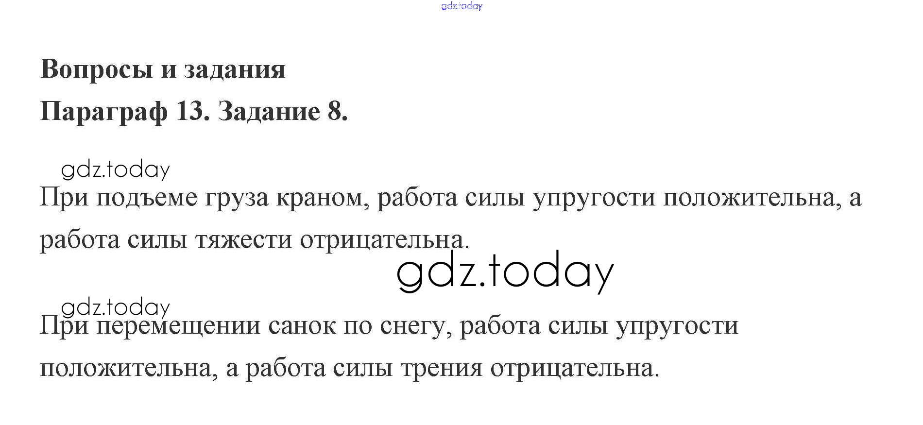 На страницах сайта gdz.today вы найдете учебный и вспомогательный материал, направленный на улучшения знаний школьной программы. ГДЗ - онлайн мир знаний Задание 13. Механическая работа. Мощность 8 Учебнику по Физике для 9 класса Генденштейн, Булатова Мнемозина 2010