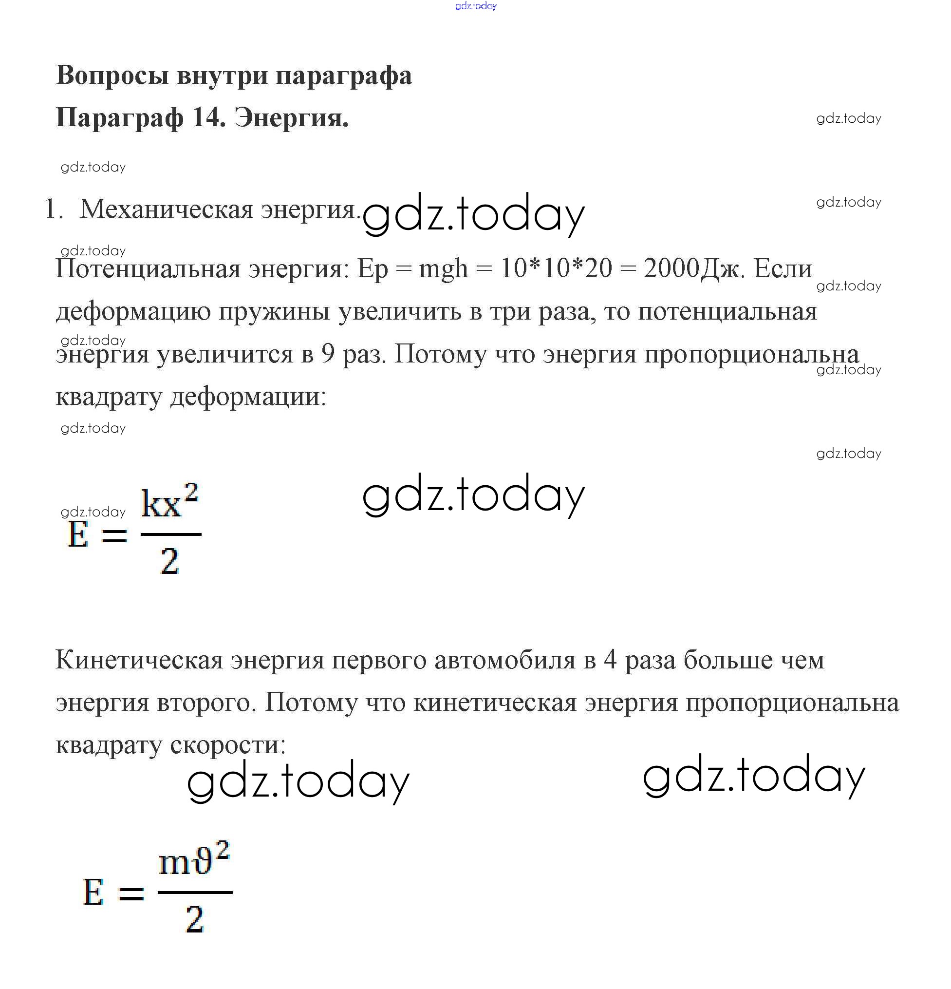 На страницах сайта gdz.today вы найдете учебный и вспомогательный материал, направленный на улучшения знаний школьной программы. ГДЗ - онлайн мир знаний Вопросы 14. Энергия 1 Учебнику по Физике для 9 класса Генденштейн, Булатова Мнемозина 2010