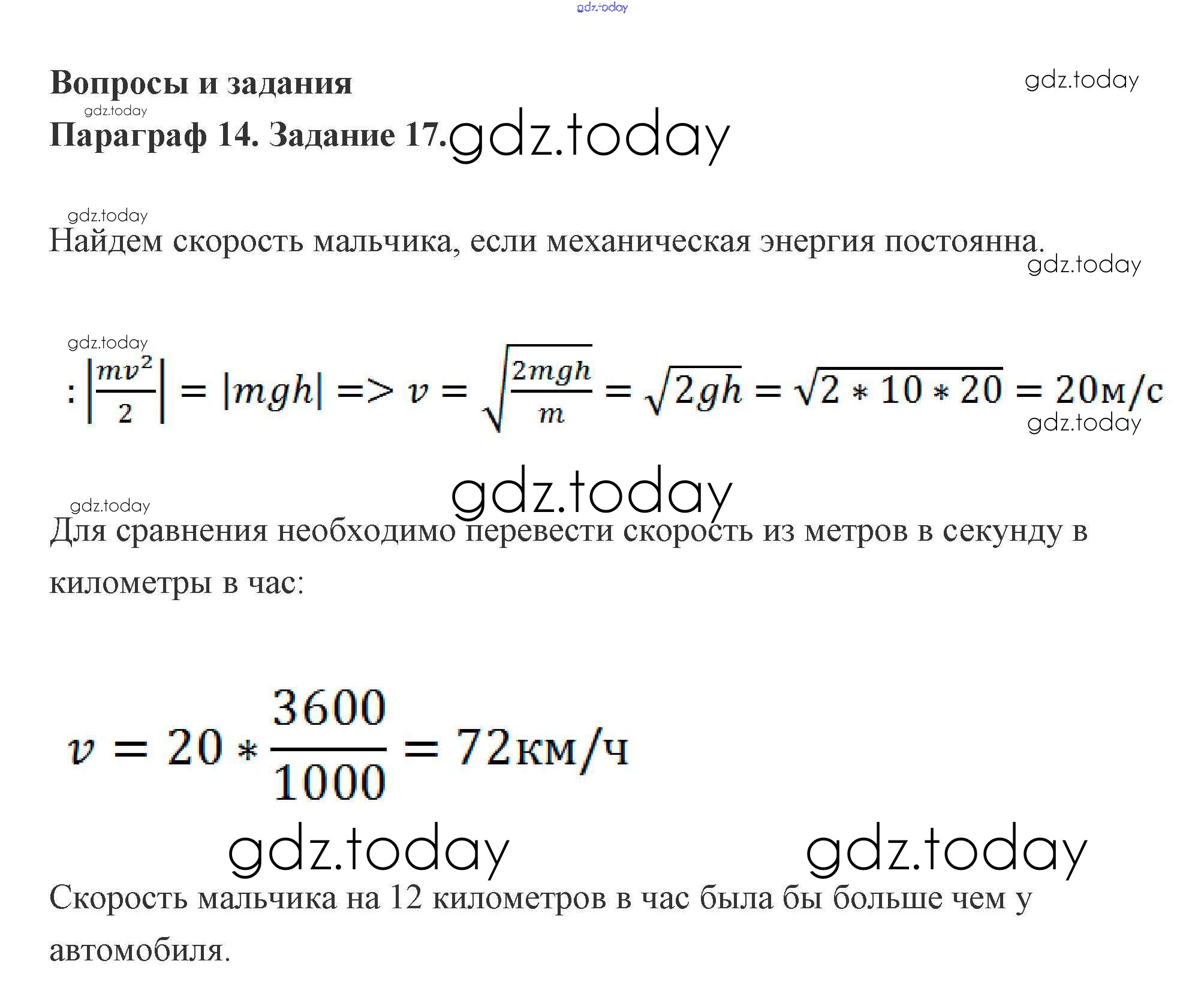 Ответы к Задание 14. Энергия 17 Учебнику по Физике для 9 класса Генденштейн, Булатова Мнемозина 2010