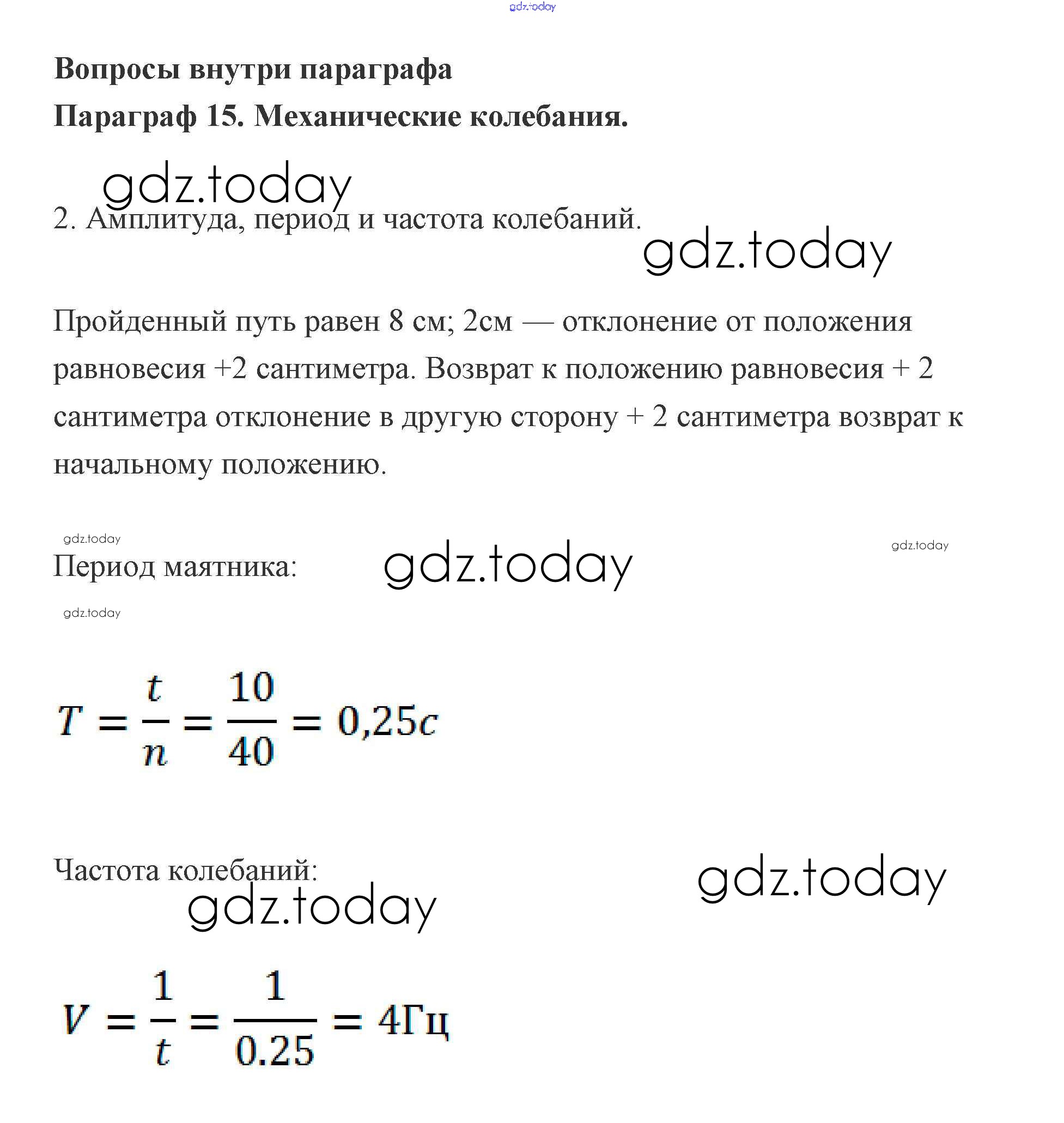 На страницах сайта gdz.today вы найдете учебный и вспомогательный материал, направленный на улучшения знаний школьной программы. ГДЗ - онлайн мир знаний Вопросы 15. Механические колебания 2 Учебнику по Физике для 9 класса Генденштейн, Булатова Мнемозина 2010