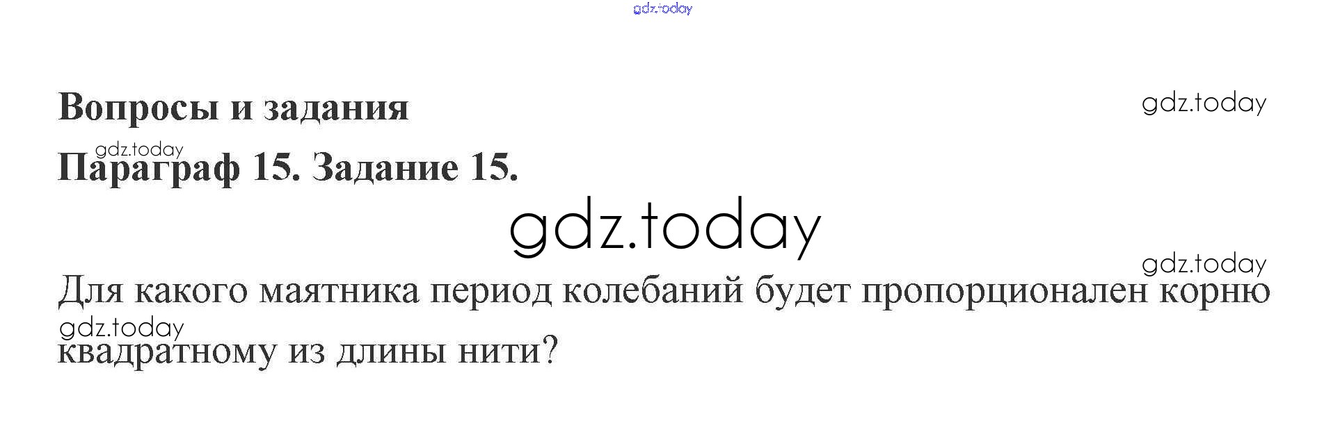 На страницах сайта gdz.today вы найдете учебный и вспомогательный материал, направленный на улучшения знаний школьной программы. ГДЗ - онлайн мир знаний Задание 15. Механические колебания 15 Учебнику по Физике для 9 класса Генденштейн, Булатова Мнемозина 2010