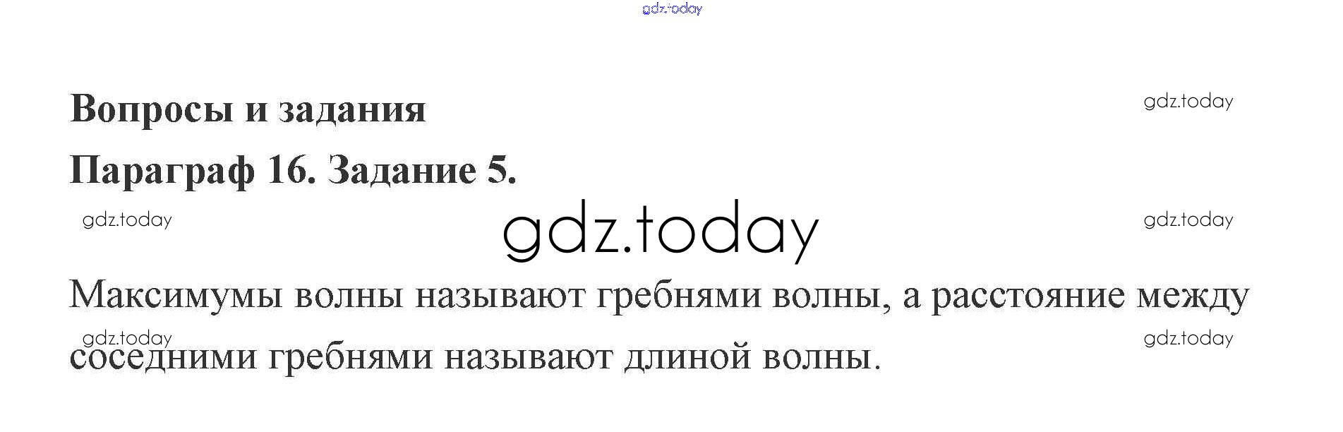 На страницах сайта gdz.today вы найдете учебный и вспомогательный материал, направленный на улучшения знаний школьной программы. ГДЗ - онлайн мир знаний Задание 16. Механические волны 5 Учебнику по Физике для 9 класса Генденштейн, Булатова Мнемозина 2010