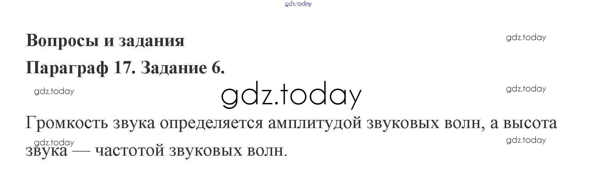 На страницах сайта gdz.today вы найдете учебный и вспомогательный материал, направленный на улучшения знаний школьной программы. ГДЗ - онлайн мир знаний Задание 17. Звук 6 Учебнику по Физике для 9 класса Генденштейн, Булатова Мнемозина 2010