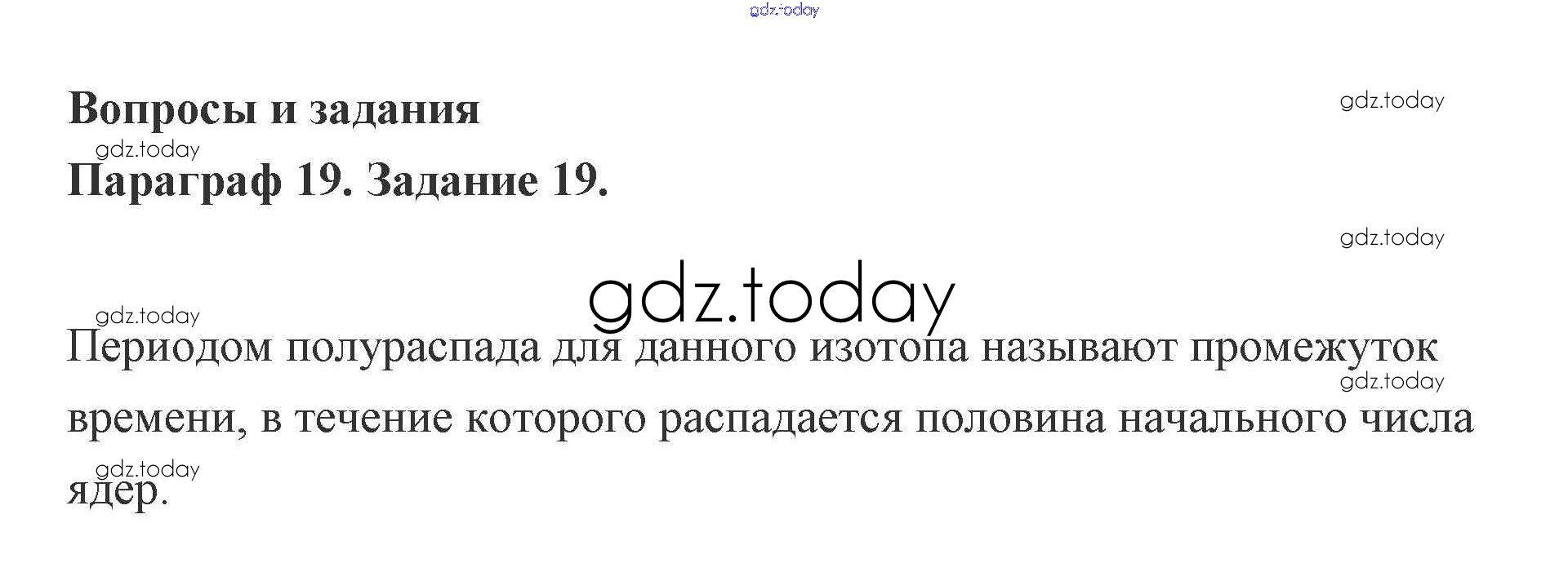На страницах сайта gdz.today вы найдете учебный и вспомогательный материал, направленный на улучшения знаний школьной программы. ГДЗ - онлайн мир знаний Задание 19. Атомное ядро. Радиоактивность 19 Учебнику по Физике для 9 класса Генденштейн, Булатова Мнемозина 2010
