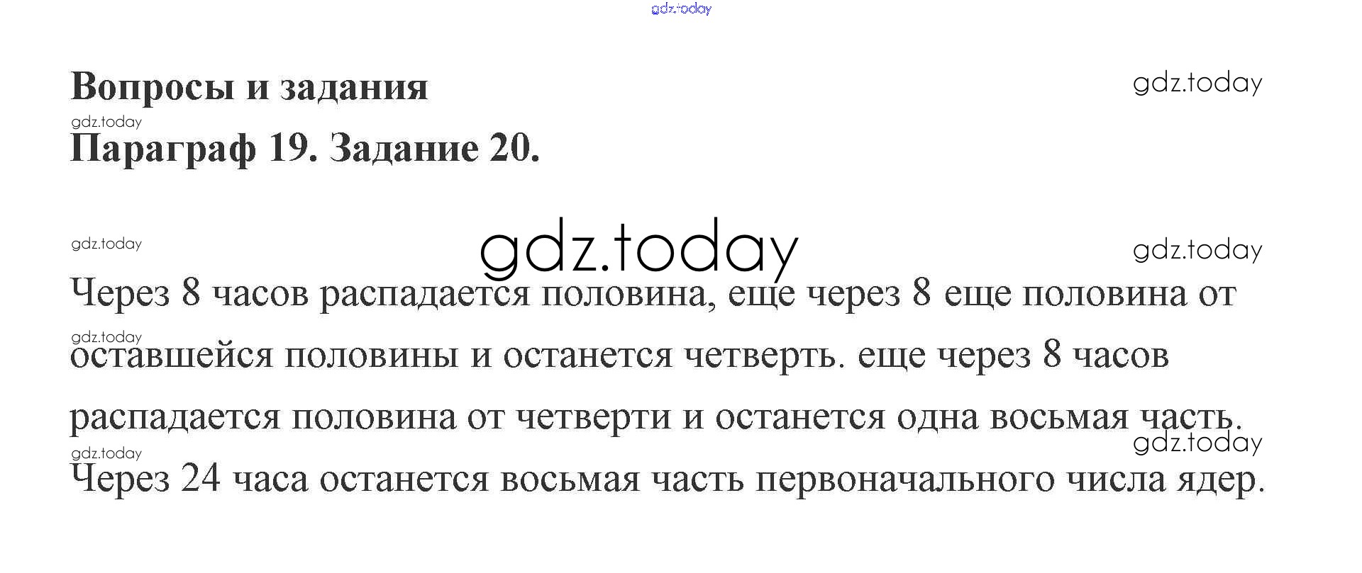 На страницах сайта gdz.today вы найдете учебный и вспомогательный материал, направленный на улучшения знаний школьной программы. ГДЗ - онлайн мир знаний Задание 19. Атомное ядро. Радиоактивность 20 Учебнику по Физике для 9 класса Генденштейн, Булатова Мнемозина 2010