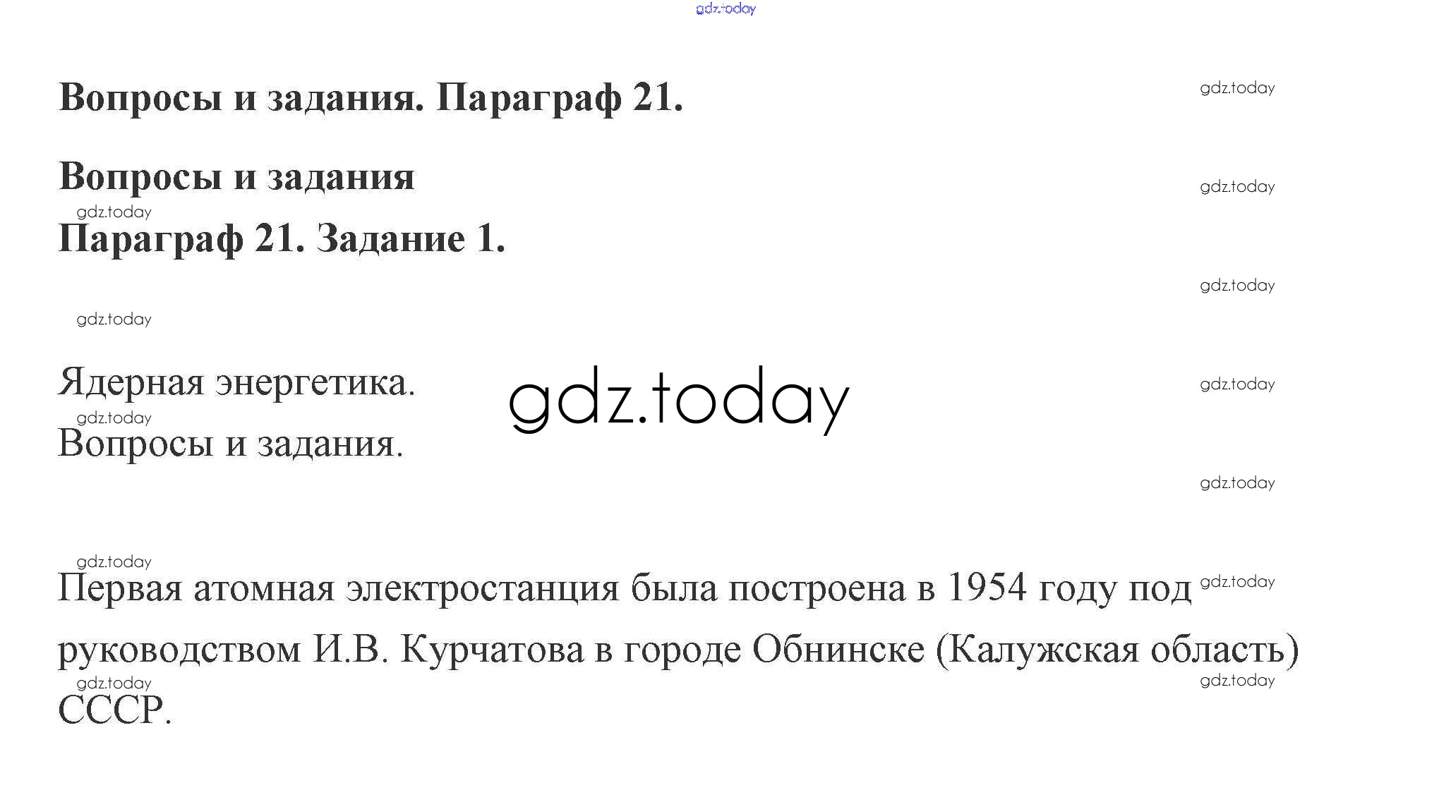На страницах сайта gdz.today вы найдете учебный и вспомогательный материал, направленный на улучшения знаний школьной программы. ГДЗ - онлайн мир знаний Задание 21. Ядерная энергетика 1 Учебнику по Физике для 9 класса Генденштейн, Булатова Мнемозина 2010