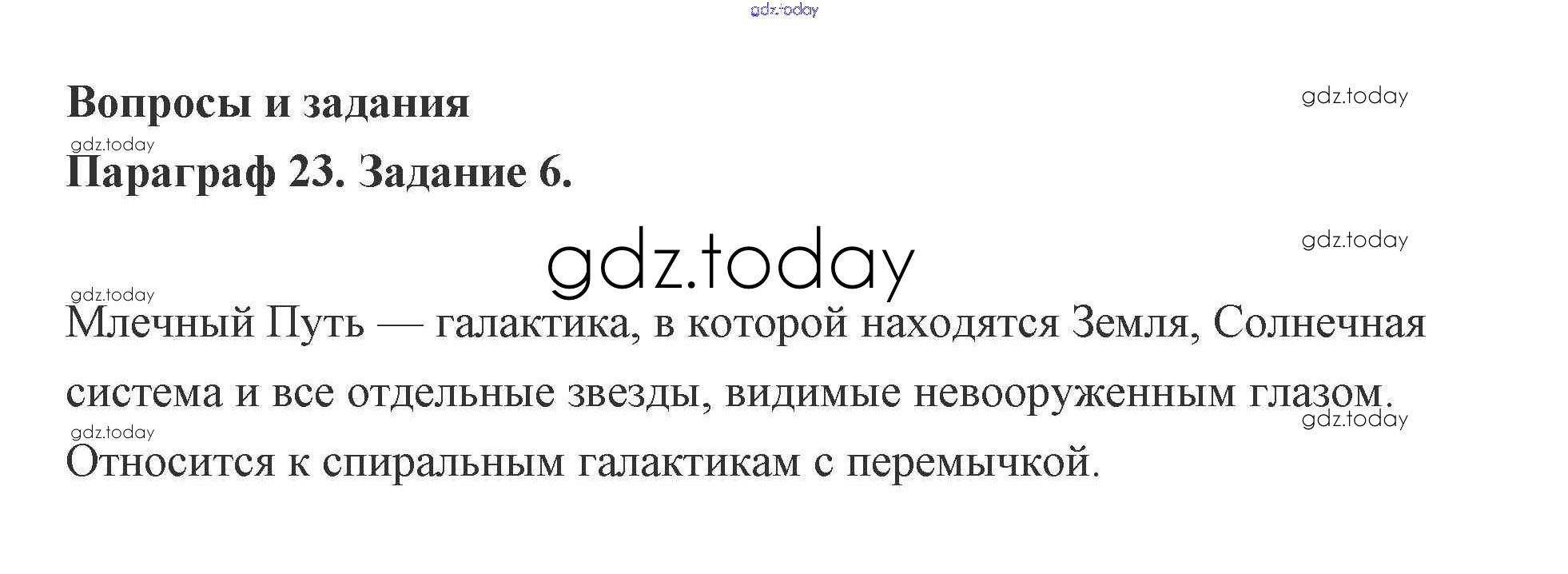 На страницах сайта gdz.today вы найдете учебный и вспомогательный материал, направленный на улучшения знаний школьной программы. ГДЗ - онлайн мир знаний Задание 23. Звезды и галактики 6 Учебнику по Физике для 9 класса Генденштейн, Булатова Мнемозина 2010