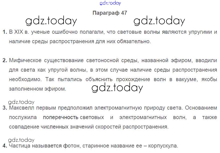 На страницах сайта gdz.today вы найдете учебный и вспомогательный материал, направленный на улучшения знаний школьной программы. ГДЗ - онлайн мир знаний Параграфы Решение к новому изданию 47 Учебнику по Физике для 9 класса Перышкин, Гутник Дрофа 2014