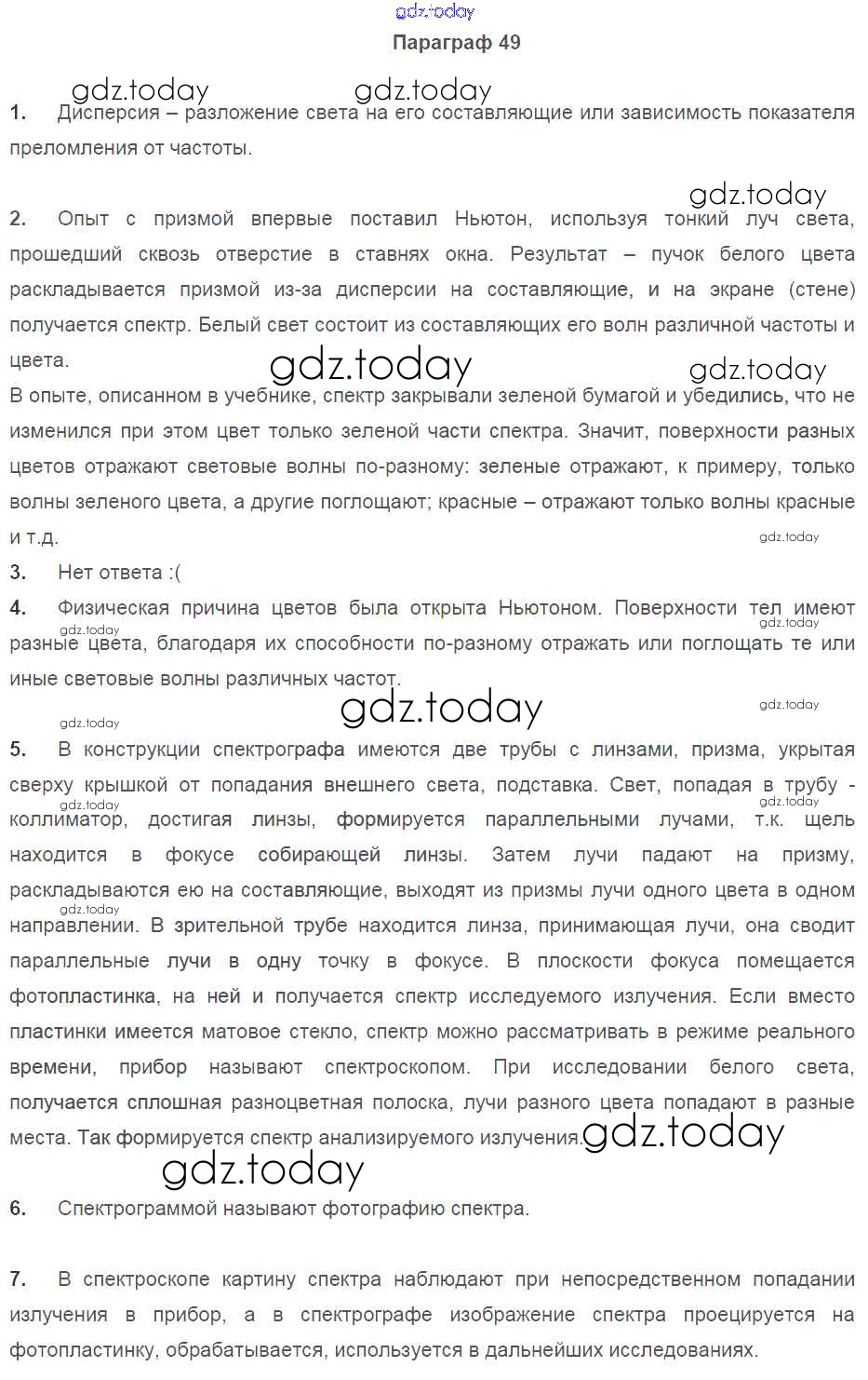 На страницах сайта gdz.today вы найдете учебный и вспомогательный материал, направленный на улучшения знаний школьной программы. ГДЗ - онлайн мир знаний Параграфы Решение к новому изданию 49 Учебнику по Физике для 9 класса Перышкин, Гутник Дрофа 2014