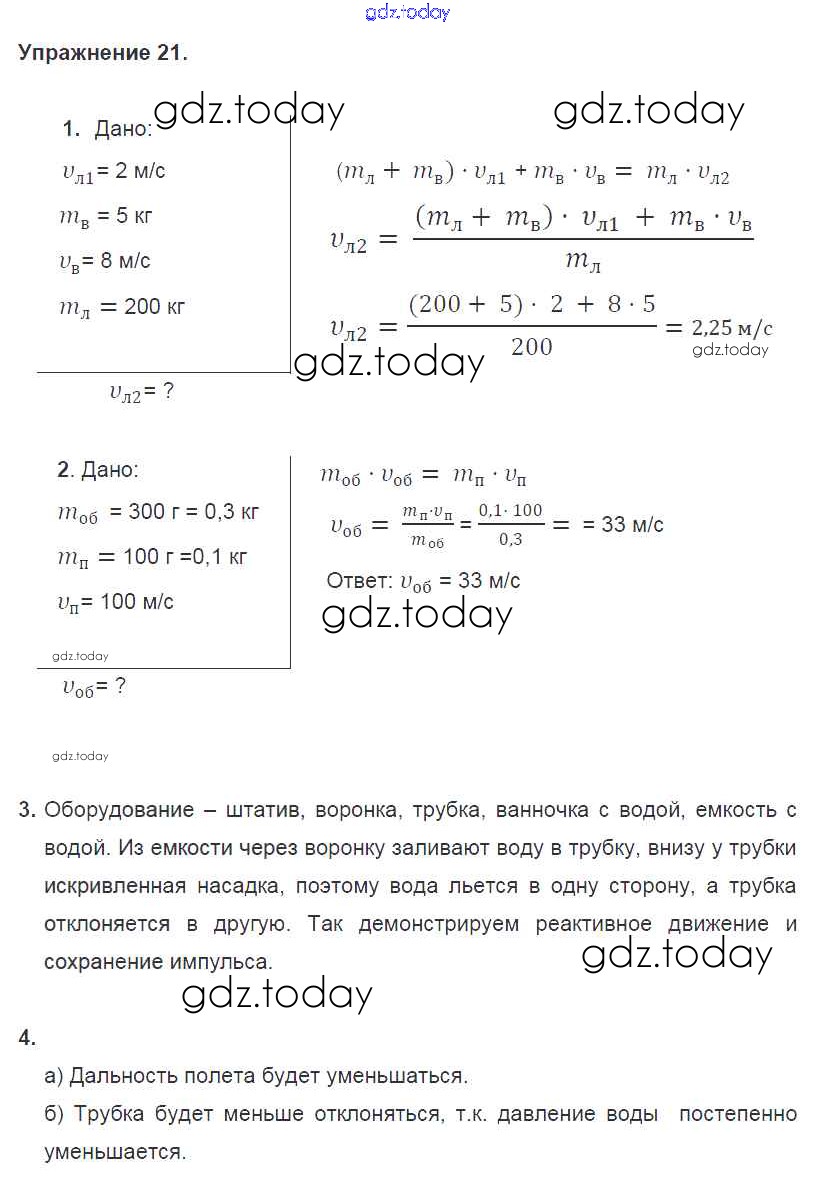 Ответы к Упражнения Решение к новому изданию 21 Учебнику по Физике для 9 класса Перышкин, Гутник Дрофа 2014