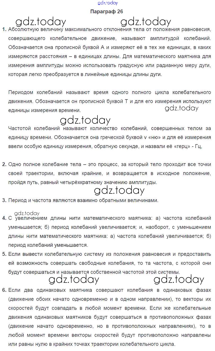 На страницах сайта gdz.today вы найдете учебный и вспомогательный материал, направленный на улучшения знаний школьной программы. ГДЗ - онлайн мир знаний Параграфы Решение к старому изданию 26 Учебнику по Физике для 9 класса Перышкин, Гутник Дрофа 2014