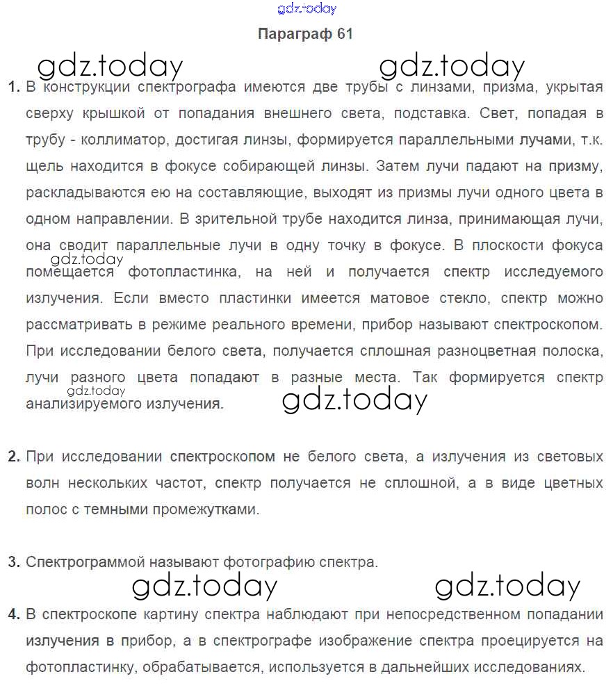 На страницах сайта gdz.today вы найдете учебный и вспомогательный материал, направленный на улучшения знаний школьной программы. ГДЗ - онлайн мир знаний Параграфы Решение к старому изданию 61 Учебнику по Физике для 9 класса Перышкин, Гутник Дрофа 2014