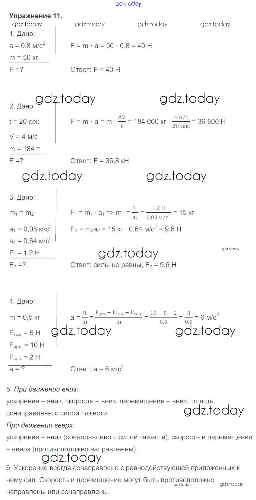 Ответы к Упражнения Решение к старому изданию 11 Учебнику по Физике для 9 класса Перышкин, Гутник Дрофа 2014
