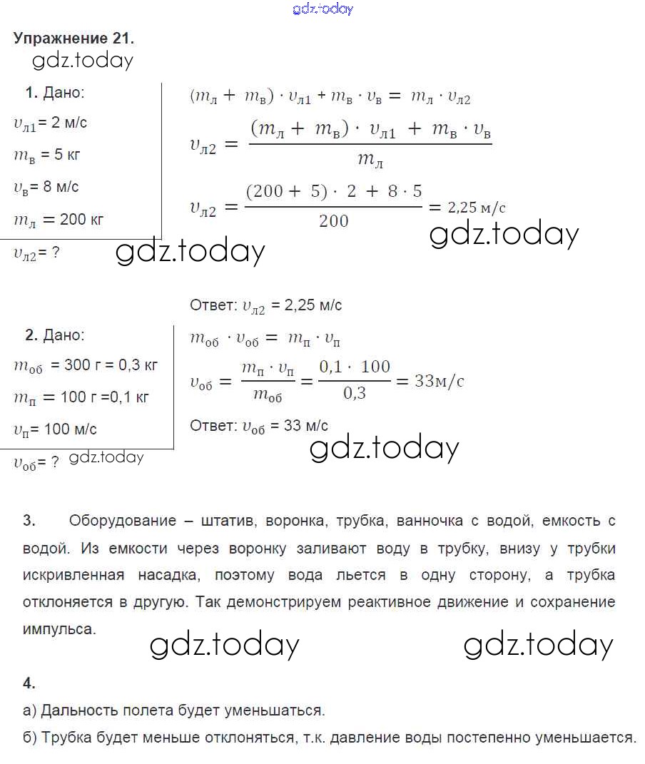 Ответы к Упражнения Решение к старому изданию 21 Учебнику по Физике для 9 класса Перышкин, Гутник Дрофа 2014