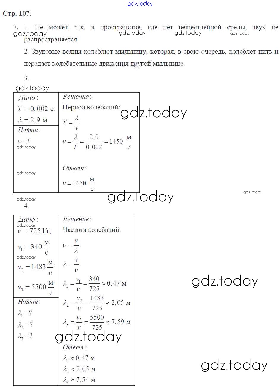 Ответы к Страницы (решение) 107 Рабочей тетради по Физике для 9 класса Касьянов, Дмитриева Дрофа УМК 2017