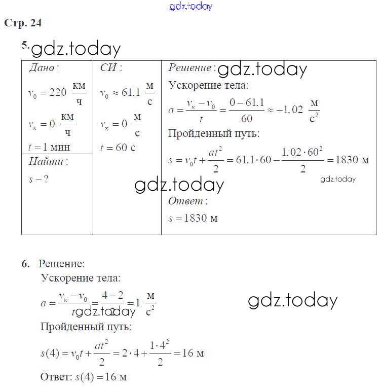 Ответы к Страницы (решение) 24 Рабочей тетради по Физике для 9 класса Касьянов, Дмитриева Дрофа УМК 2017