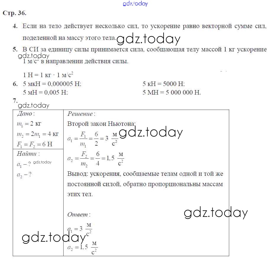 Ответы к Страницы (решение) 36 Рабочей тетради по Физике для 9 класса Касьянов, Дмитриева Дрофа УМК 2017