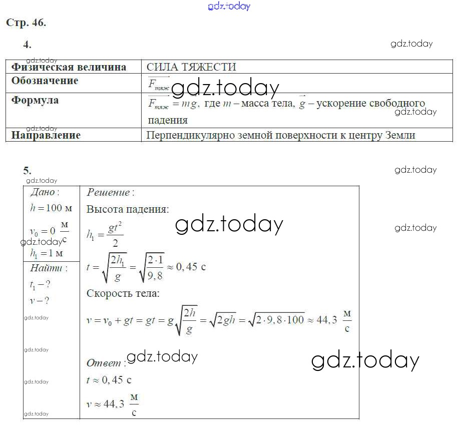 На страницах сайта gdz.today вы найдете учебный и вспомогательный материал, направленный на улучшения знаний школьной программы. ГДЗ - онлайн мир знаний Страницы (решение) 46 Рабочей тетради по Физике для 9 класса Касьянов, Дмитриева Дрофа УМК 2017