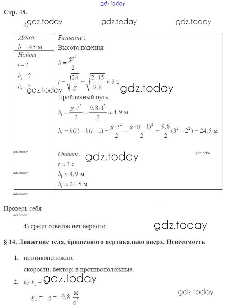 На страницах сайта gdz.today вы найдете учебный и вспомогательный материал, направленный на улучшения знаний школьной программы. ГДЗ - онлайн мир знаний Страницы (решение) 48 Рабочей тетради по Физике для 9 класса Касьянов, Дмитриева Дрофа УМК 2017
