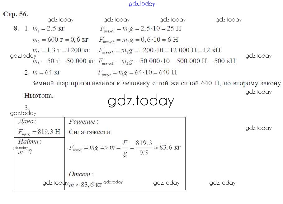 Ответы к Страницы (решение) 56 Рабочей тетради по Физике для 9 класса Касьянов, Дмитриева Дрофа УМК 2017