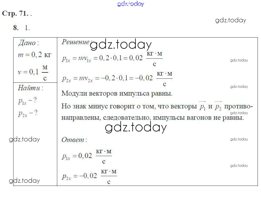 Ответы к Страницы (решение) 71 Рабочей тетради по Физике для 9 класса Касьянов, Дмитриева Дрофа УМК 2017