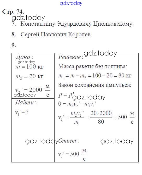 Ответы к Страницы (решение) 74 Рабочей тетради по Физике для 9 класса Касьянов, Дмитриева Дрофа УМК 2017
