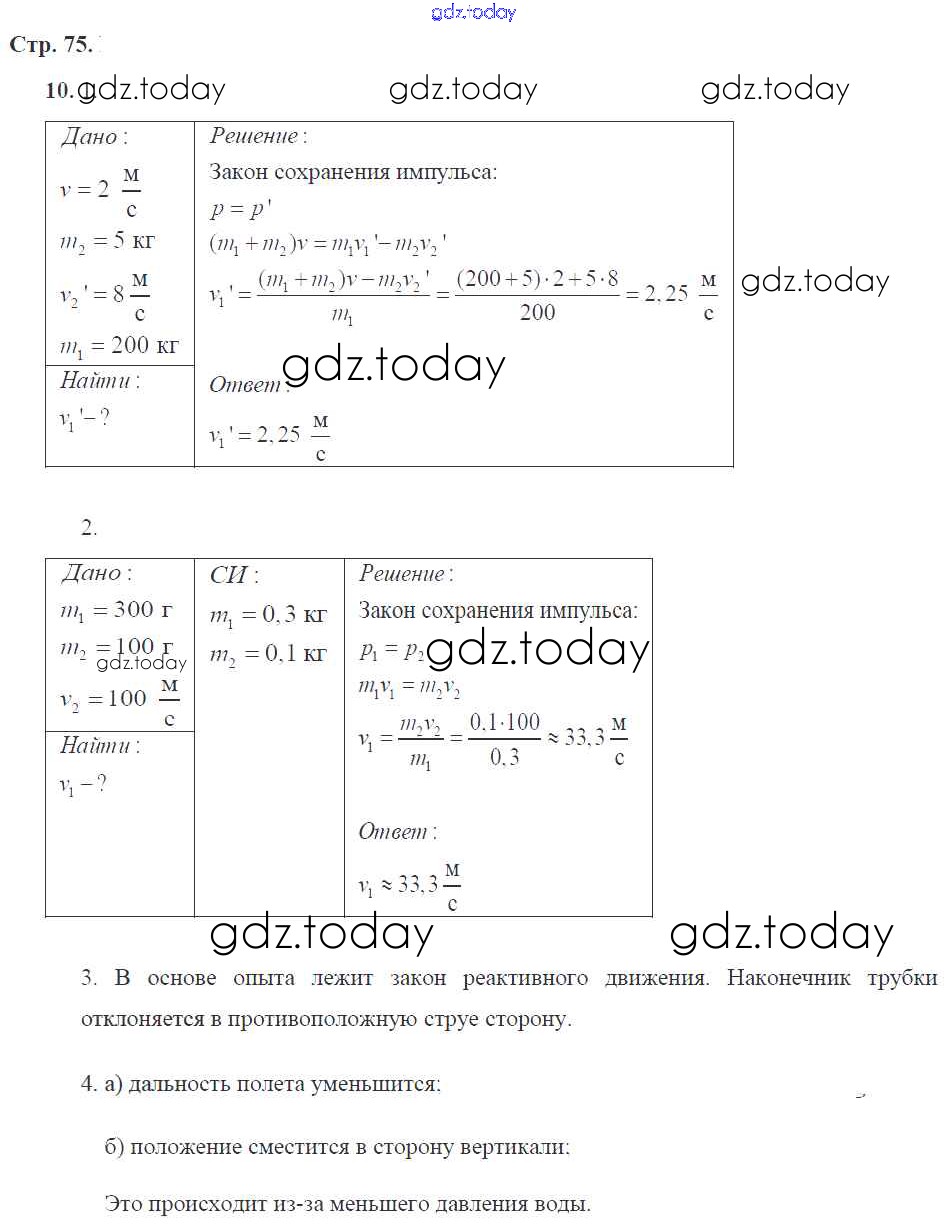Ответы к Страницы (решение) 75 Рабочей тетради по Физике для 9 класса Касьянов, Дмитриева Дрофа УМК 2017