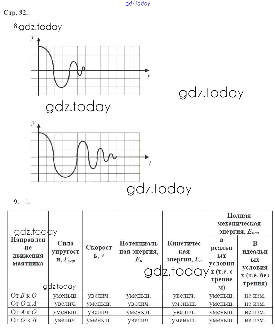 На страницах сайта gdz.today вы найдете учебный и вспомогательный материал, направленный на улучшения знаний школьной программы. ГДЗ - онлайн мир знаний Страницы (решение) 92 Рабочей тетради по Физике для 9 класса Касьянов, Дмитриева Дрофа УМК 2017