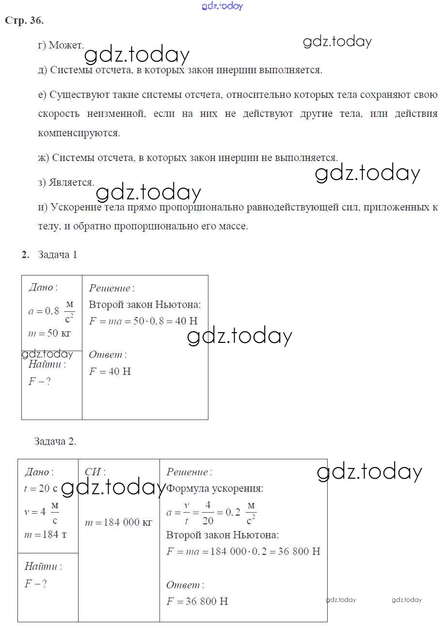 Ответы к Страницы (решение) 36 Рабочей тетради по Физике для 9 класса Минькова, Иванова Экзамен УМК 2015
