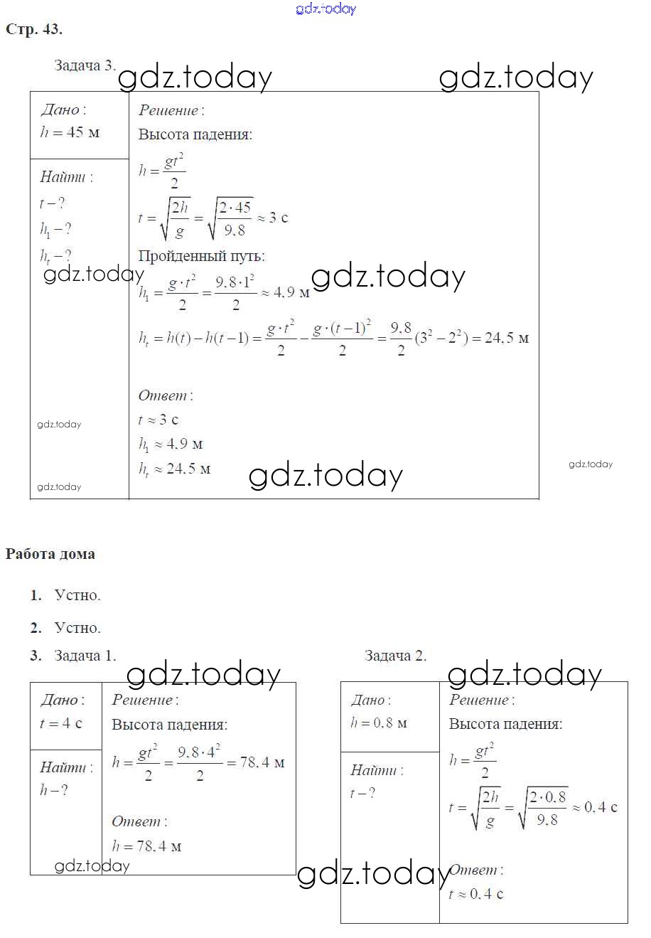 Ответы к Страницы (решение) 43 Рабочей тетради по Физике для 9 класса Минькова, Иванова Экзамен УМК 2015