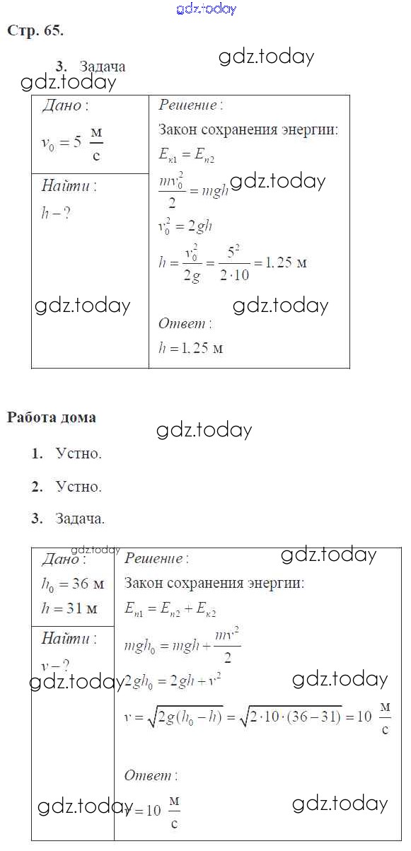 Ответы к Страницы (решение) 65 Рабочей тетради по Физике для 9 класса Минькова, Иванова Экзамен УМК 2015