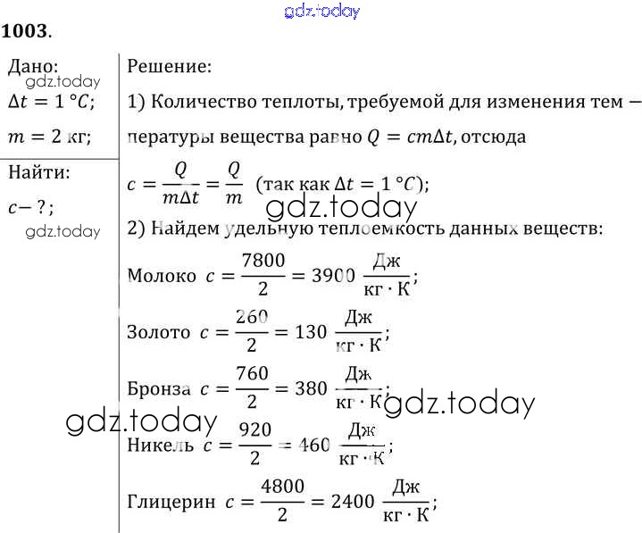 На страницах сайта gdz.today вы найдете учебный и вспомогательный материал, направленный на улучшения знаний школьной программы. ГДЗ - онлайн мир знаний Решение к заданиям 1003 Сборнику задач по Физике для 7-9 класса Лукашик, Иванова Просвещение 2011