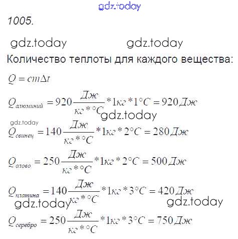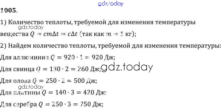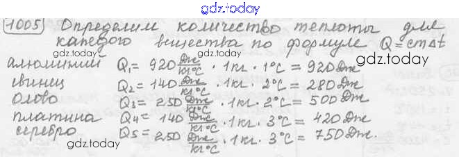 На страницах сайта gdz.today вы найдете учебный и вспомогательный материал, направленный на улучшения знаний школьной программы. ГДЗ - онлайн мир знаний Решение к заданиям 1005 Сборнику задач по Физике для 7-9 класса Лукашик, Иванова Просвещение 2011