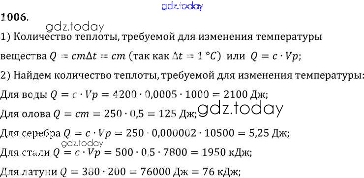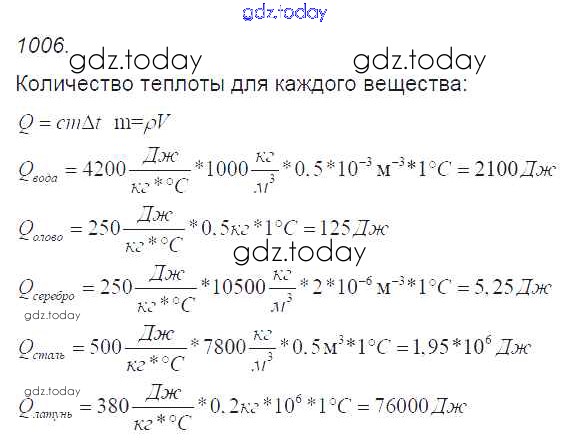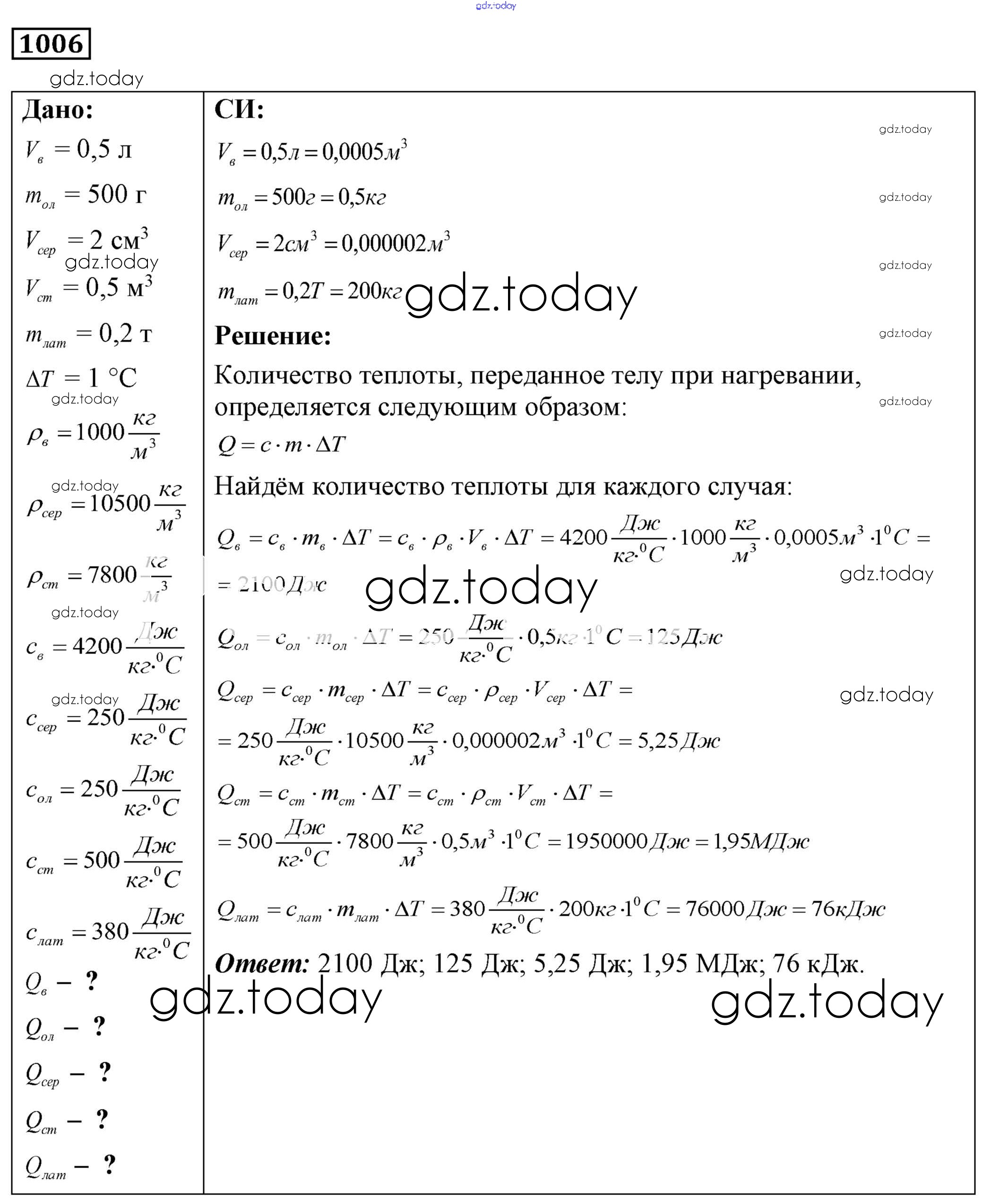 На страницах сайта gdz.today вы найдете учебный и вспомогательный материал, направленный на улучшения знаний школьной программы. ГДЗ - онлайн мир знаний Решение к заданиям 1006 Сборнику задач по Физике для 7-9 класса Лукашик, Иванова Просвещение 2011